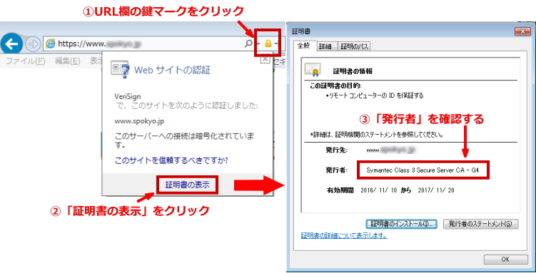では、証明書をどのように確認をするのかIE11での操作方法を解説します。